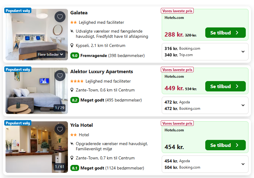 Vi har hér linket dig til dé ophold med laveste priser på Zakynthos.